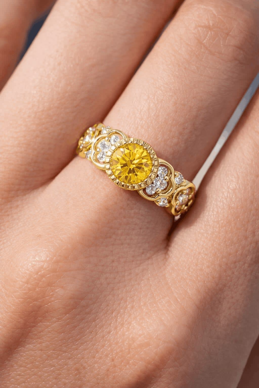 Yellow Diamond Halo Ring in 14k Gold