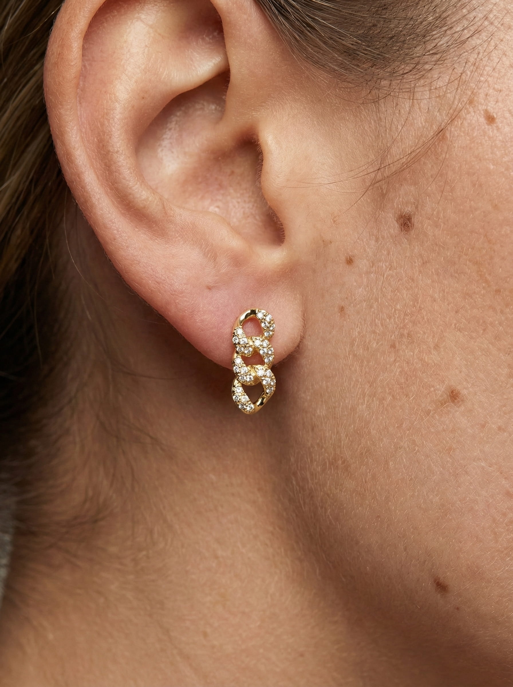 Diamond Chain Link Stud Earrings in 14K Gold