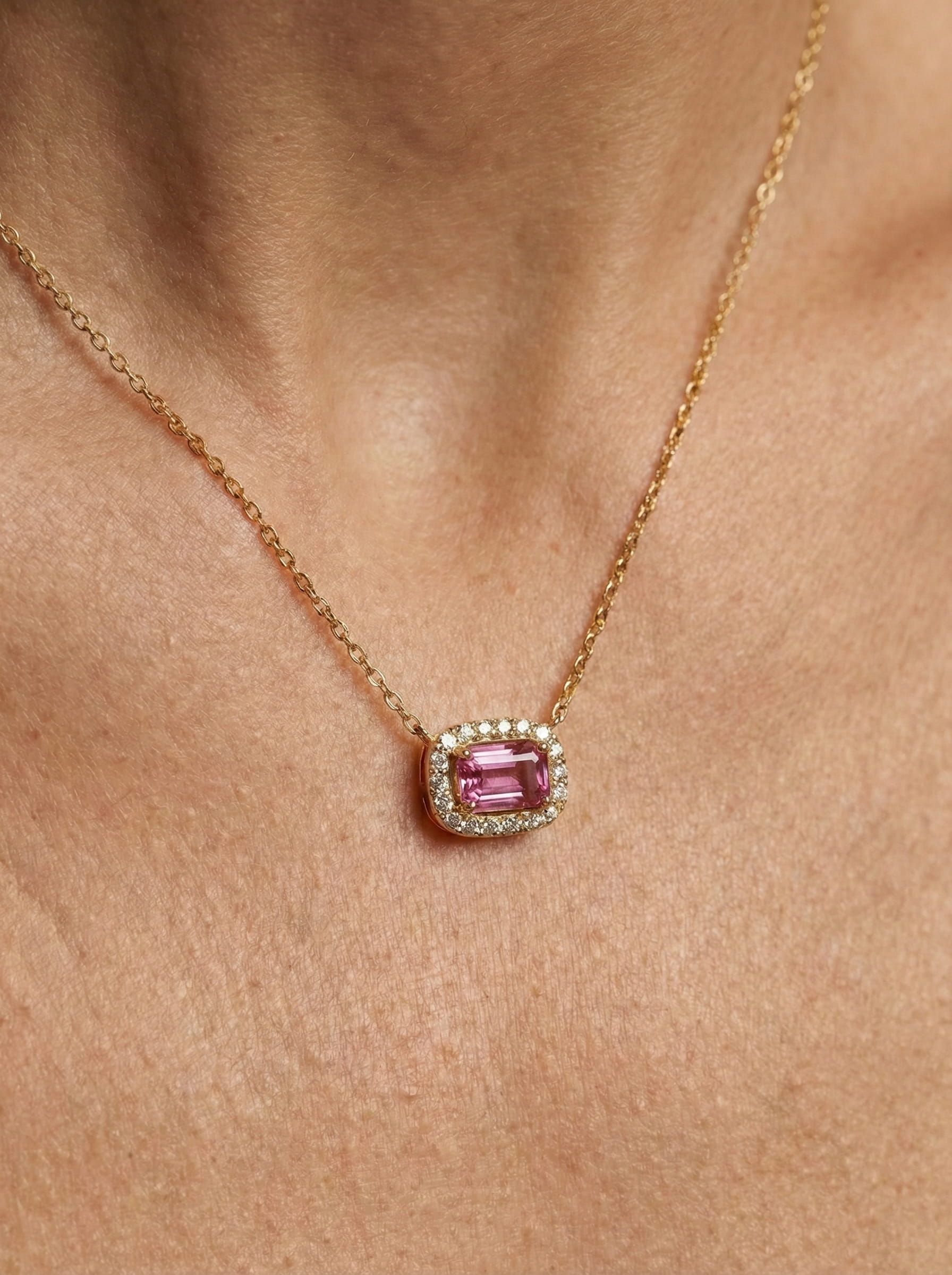 Pink Sapphire Halo Pendant Necklace